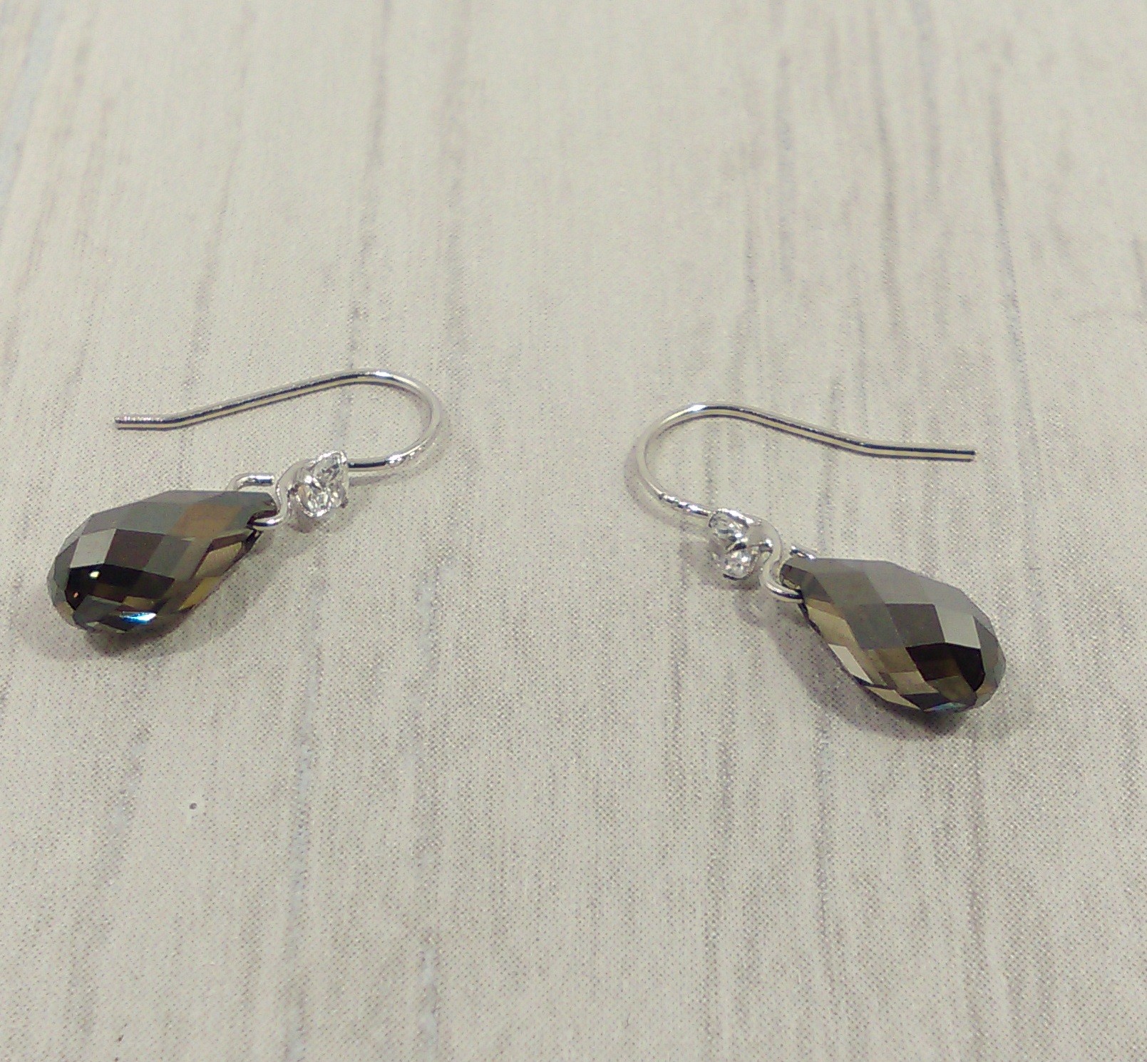 Boucles d'oreilles en argent 925éme rhodié et cristal de Swarovski goutte noire, pour oreilles percées, 2,8 cm.