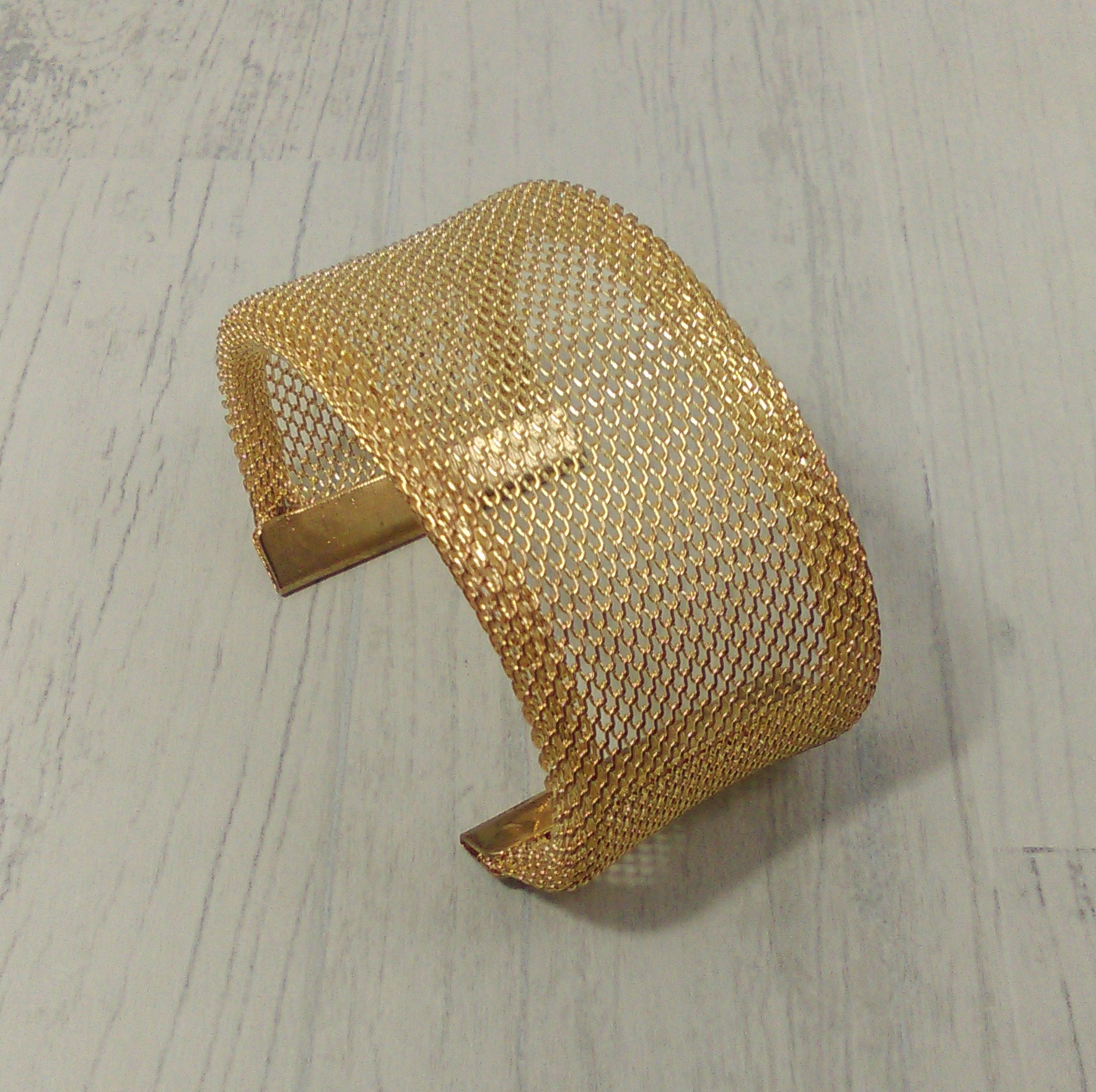 Bracelet manchette en métal doré quadrillé ouvert, non ajustable, 19 cm.